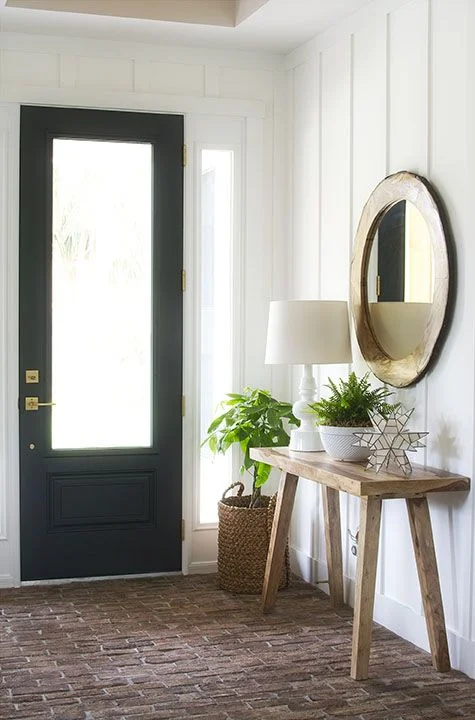 From the foyer, look into the dining room where designer lighting in a modern x pattern illuminates the room and draws your attention toward a wall of accordion glass doors which open fully onto a bluestone patio for outdoor dining and living. (modern farmhouse foyer makeover all the way, baby.) one thing i'd always wanted was shiplap, which was the first big change in this space. Light wood flooring adds warmth while keeping the interiors. Thank you for stopping by at this website. Cozy, functional, and trendy — what more could you want in a home?