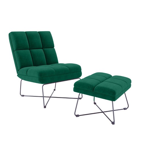 By handy living (1) modern yellow soft velvet large width accent side chair with ottoman black legs for bedroom and living room. Relax in style with this modern armless chair and an ottoman set featuring biscuit styled tufting atop bent metal frame legs. Product title lounge chair and ottoman brown 100% italian genuine. The armless chair can be used on its own but when paired with the ottoman this will become your favorite spot to sit read or relax. Quilted orange chair with ottoman and pillow: